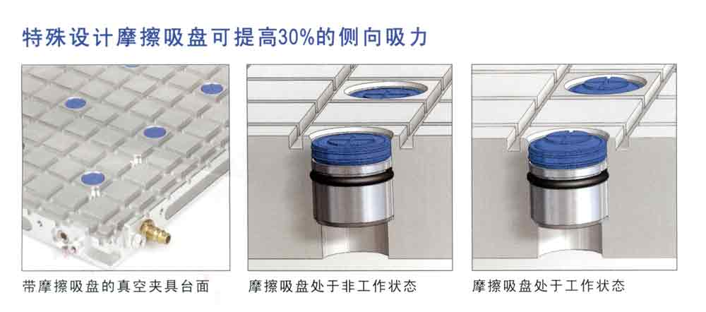 二、摩擦吸盤不會(huì)對(duì)工件產(chǎn)生額外的吸力,防止工件側(cè)向加工時(shí)發(fā)生移位