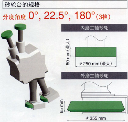 砂輪臺的規(guī)格:連續(xù)分度單位0.0001°(0.36′′);重復分度精度1′′(0.0003′′)
