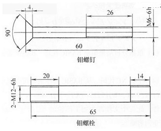 鉬合金的強度、硬度均較高,韌性差,性脆易折斷,可加工性差,但因其具有熔點高、密度低和熱脹系數(shù)小的特性,常用于制造航空和航天的各種高溫部件。兩種鉬合金零件分別為鉬螺釘和鉬螺栓,如附圖所示。毛坯來料為熱軋Ф16mm鉬合金鋼棒,加工中發(fā)現(xiàn)該材料密度低,表皮硬度非常高,應(yīng)為退火殘余硬度。表層以內(nèi)硬度仍然很高,韌性差,導(dǎo)熱慢。使用普通高速鋼或硬質(zhì)合金刀具加工非常困難。首先,刀具前、后刀面及刀尖磨損很快,加注切削液,使用常態(tài)下不同切削用量多次試驗,均無法獲得滿意效果,一般外圓刀片加工不過4件就需更換;其次,零件在刀具稍有磨損時即出現(xiàn)掉渣缺陷,平端面、切斷及車螺紋時均出現(xiàn)掉渣現(xiàn)象。外圓加工及端面加工在精車刀保持鋒利情況下可基本滿足圖樣要求,但螺紋加工掉渣始終無法避免。