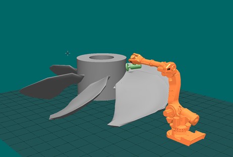 機器人末端執(zhí)行器夾持打磨工具對葉片打磨拋光的模擬圖