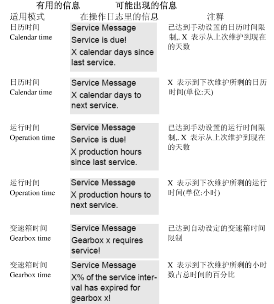 * 變速箱 1 的工作時間計數(shù),基于變速箱 1 的維護(hù)周的百分比報警