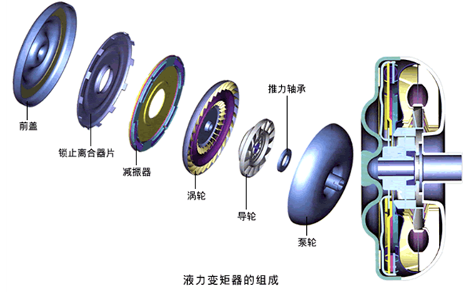 變扭器是自動(dòng)變速器不可缺少的重要部分,它裝在發(fā)動(dòng)機(jī)的飛輪上,其作用是將發(fā)動(dòng)機(jī)的動(dòng)力傳遞給自動(dòng)變速器中的齒輪變速機(jī)構(gòu),并具有一定的變速功能。